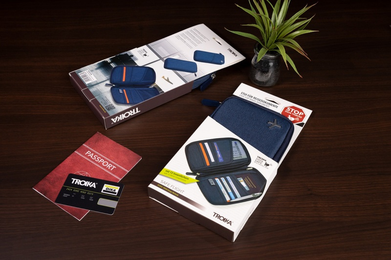 • Etui na dokumenty TROIKA Safe Flight, na suwak, niebieskie